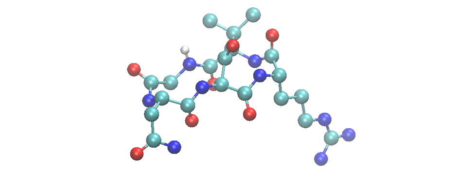 例えば、私の所属している研究室では環状ペプチド(cyclic peptide)の研究をしているのですが、研修教材を始めた当初は原子を中心に扱ってきましたが、次第にジペプチド(dipeptide)をし、最後には環状ペプチドのデモをしました。